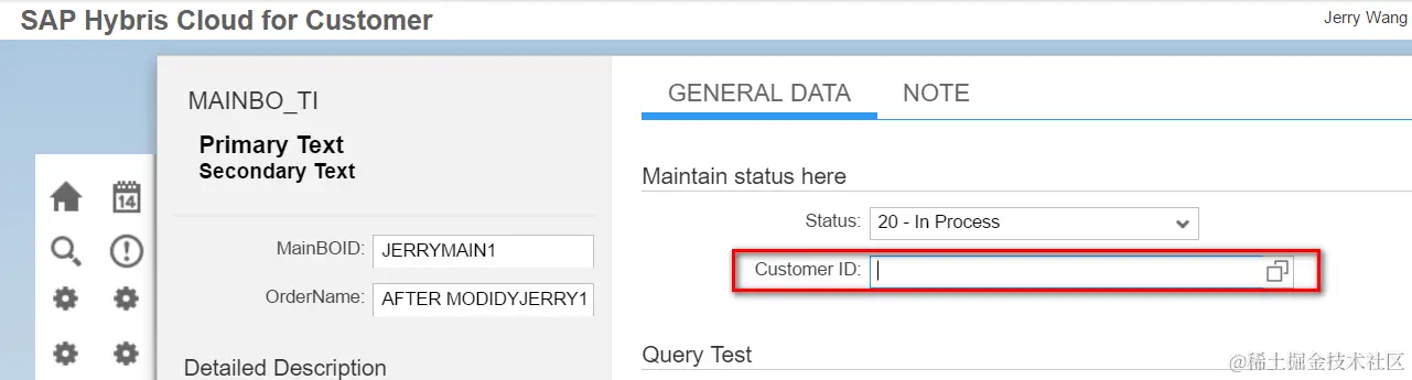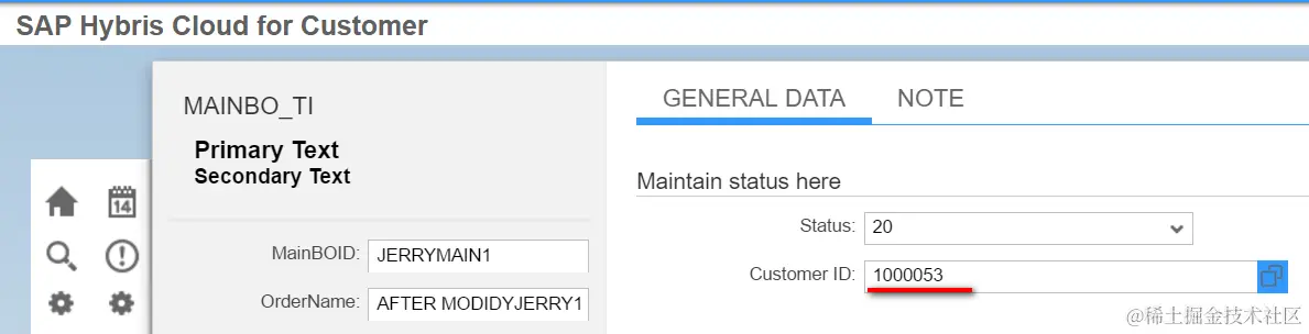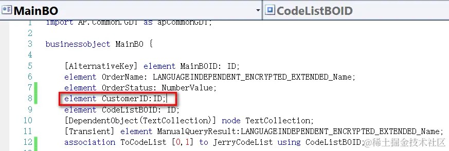 This is my BO which contains a field pointing to a reference customer ID: