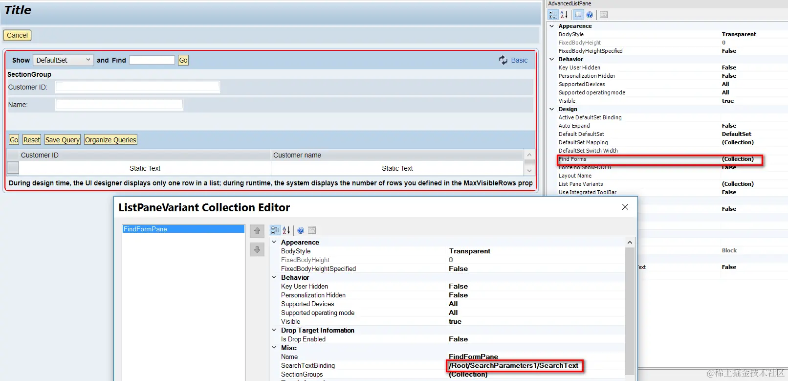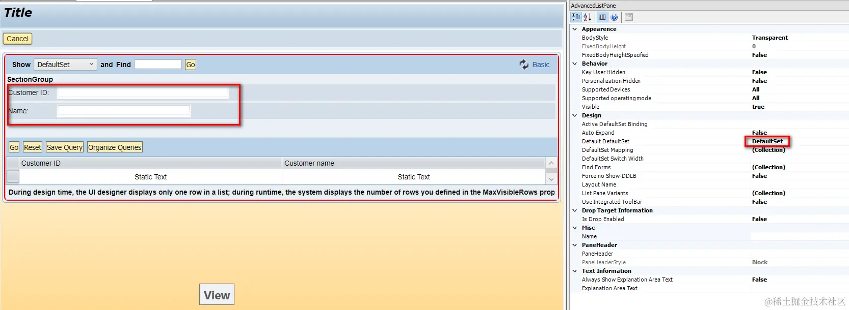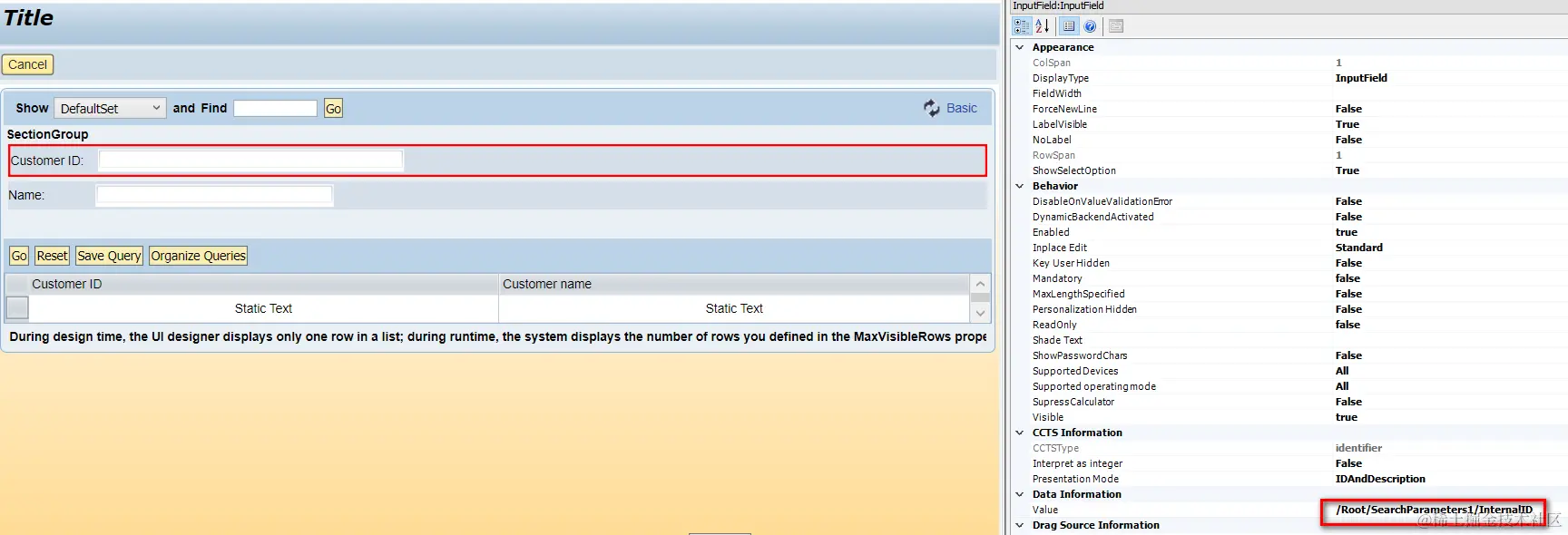 (3) Since the work in Data tab and controller tab are done, the left task is to draw search parameter field in Designer tab.