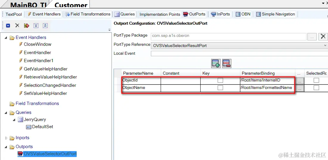 Bind these two fields to Outport parameter as displayed below.