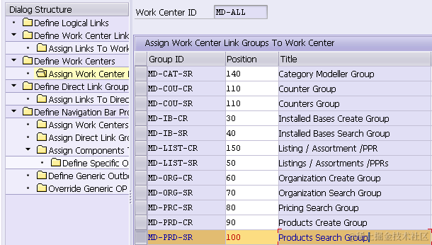 Choose entry for MD-ALL, double click on “Assign Work Center Link Groups To Work Center”: