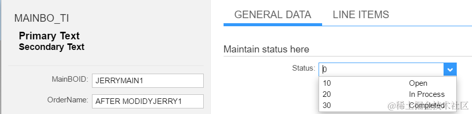 In this blog, I will introduce the third approach to build a kind of dynamic Code List without using dedicated data type. Dynamic Code List means for the same BO, instance A could have drop down list for example 1,2,3 and another instance B has list as A, B, C. In productive scenario this dynamic behavior could be helpful if you would like to achieve that different BO instance has different Code List based on their transaction type for example.