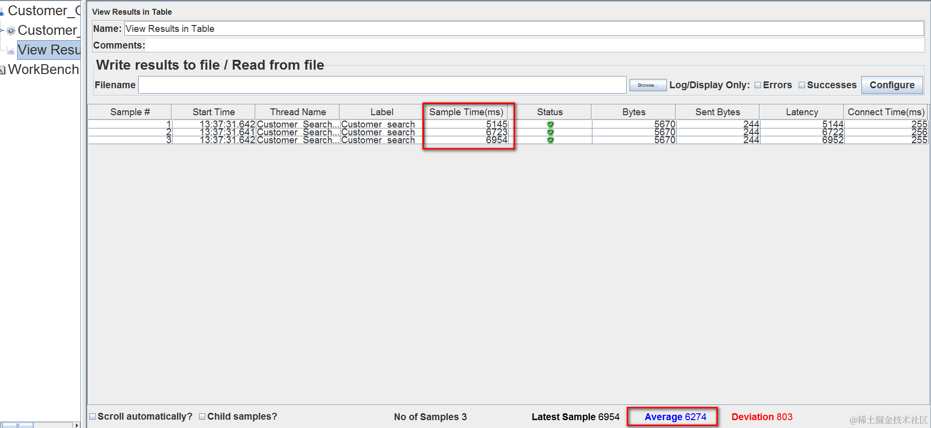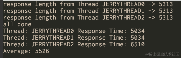 And I have written a simple Java application to generate parallel request via multiple thread and the result measured in Java program is consistent with the one got from JMeter.