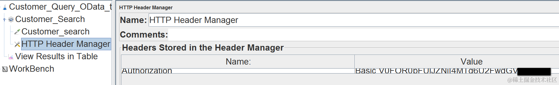 (3) Create a new HTTP Header Manager and specify the basic authentication header field and value.