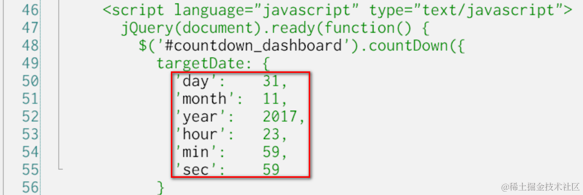 As you see I hard code the last second of year 2017 as the time to count down here, feel free to replace with your own date and time.