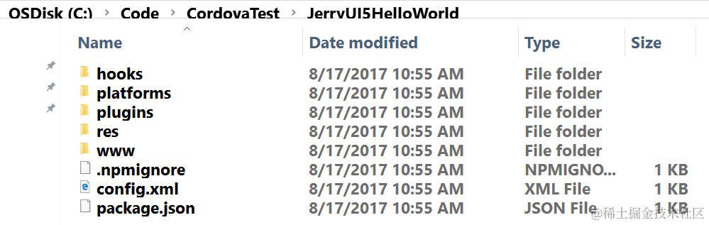 Platforms folder is empty so far since I don’t add any mobile platform yet.
