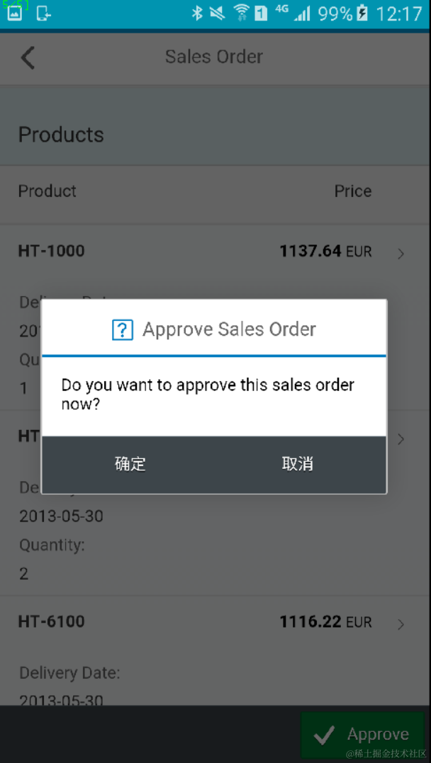 Note: although the Fiori application itself can work offline with a mocked data model, in order to reduce the size of packaged APK file, I didn’t package UI5 library to the APK, but instead declare a reference to UI5 library with online version, which means when you test this application in your mobile phone, it is a must that your phone should have internet access.