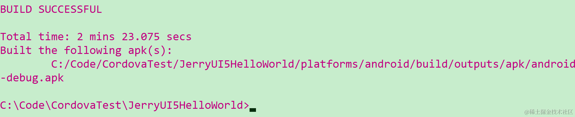Then use command cordova compile, and you will see the APK file generated successfully.