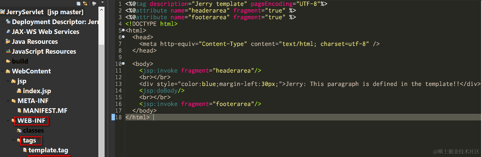 (1) Create a template.tag under folder WEB-INF/tags with the following source code: