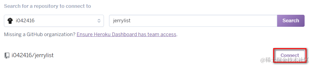 Then specify the very Github repository belonging to your github account – this repository will be bound to your Heroku application: