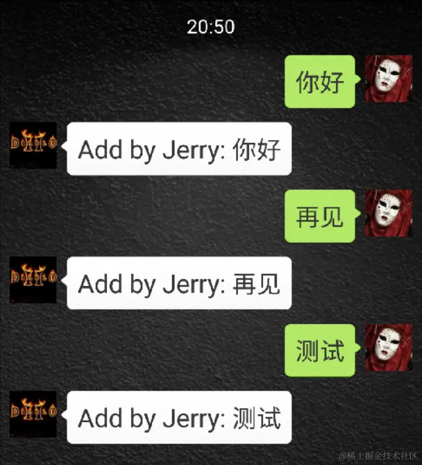 Here I simply add the hard coded prefix “Add by Jerry:” to the original text and send it back.