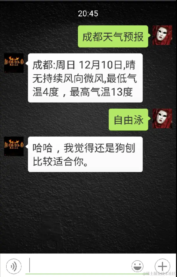 (3) Now it is your turn: parse the text sent delegate from Wechat platform, and send answer back into the requested HTTP response. Once that has been done, your end user will receive the answer with the help of Wechat platform.