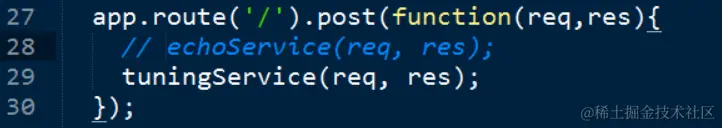 The code above shows that when your user send a text to your subscription account, an HTTP post request containing this text will be delegated to your nodejs server by Wechat platform, as a result it is your responsibility to parse the text from HTTP post, do your own logic ( simple echo or tuning handling ) and send the response back. The echo service in this blog is implemented in module echo.js.
