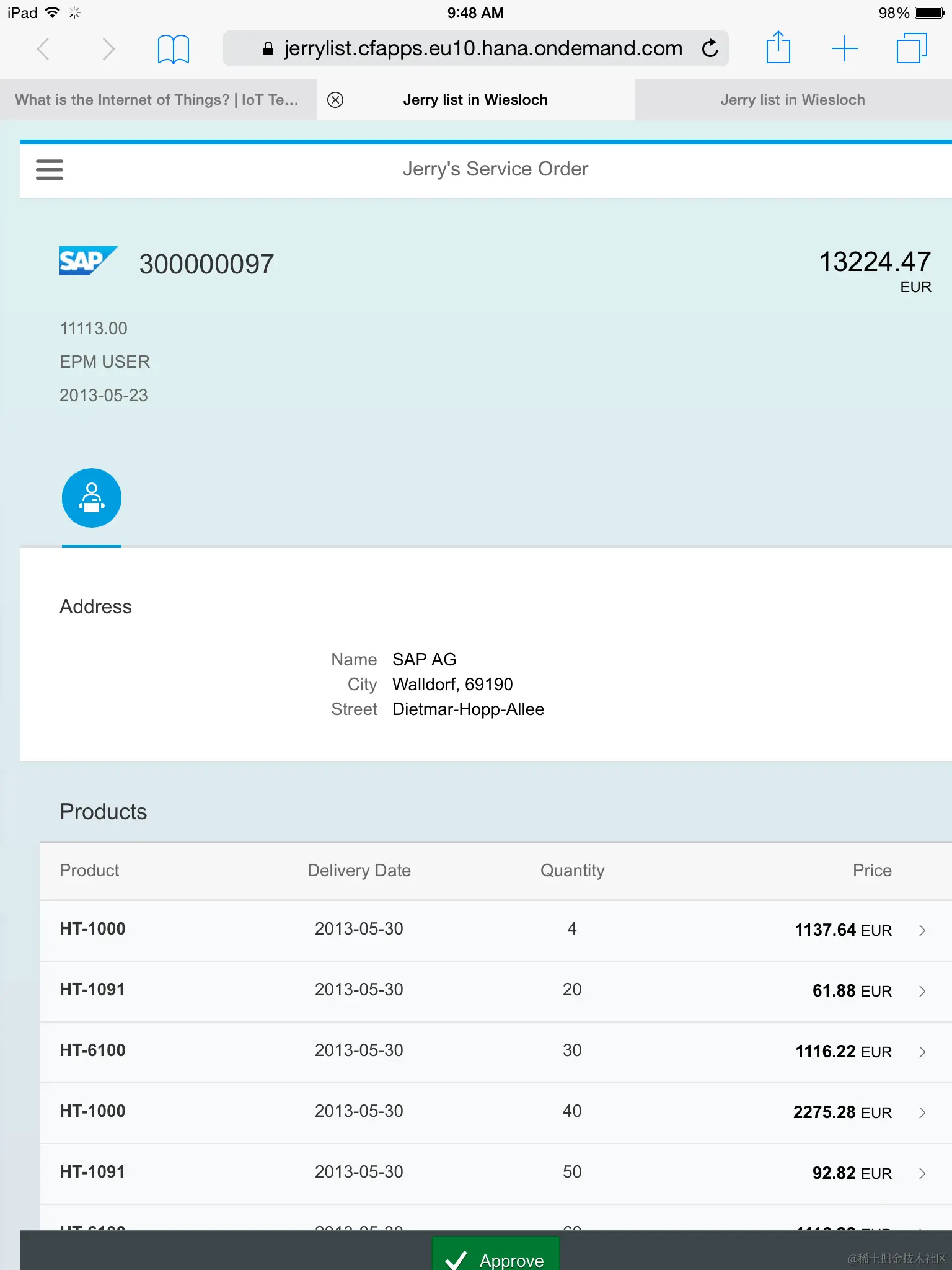 Click the hyperlink, and Chrome development tool window is opened automatically. Now it is ready to debug – for example press the “approve” button in my iPad, and the breakpoint set in the corresponding event handler in my laptop is triggered.