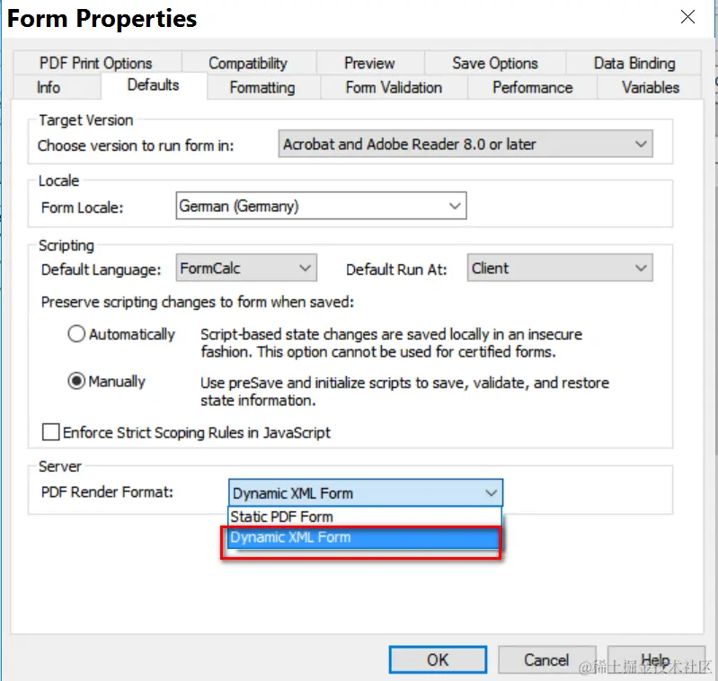 Set PDF Render Format as Dynamic XML Form: