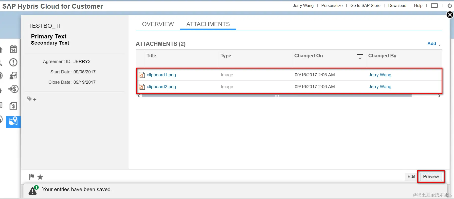 And now you have successfully uploaded two images as attachment to a given BO instance: