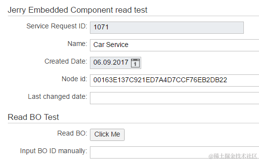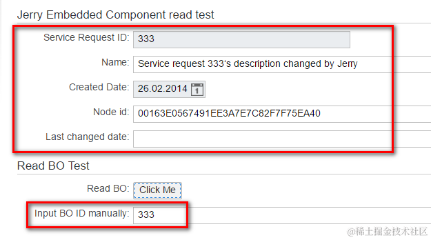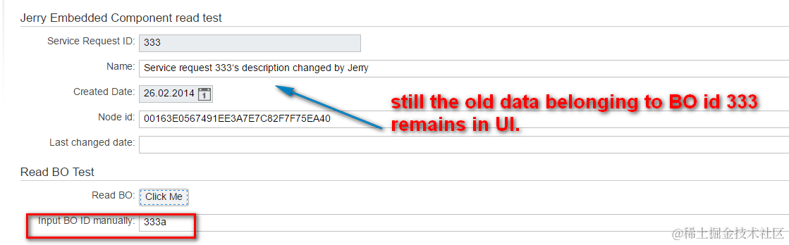 After I type ID 333 in the input field and press button, the data for BO 333 is read from backend and displayed: