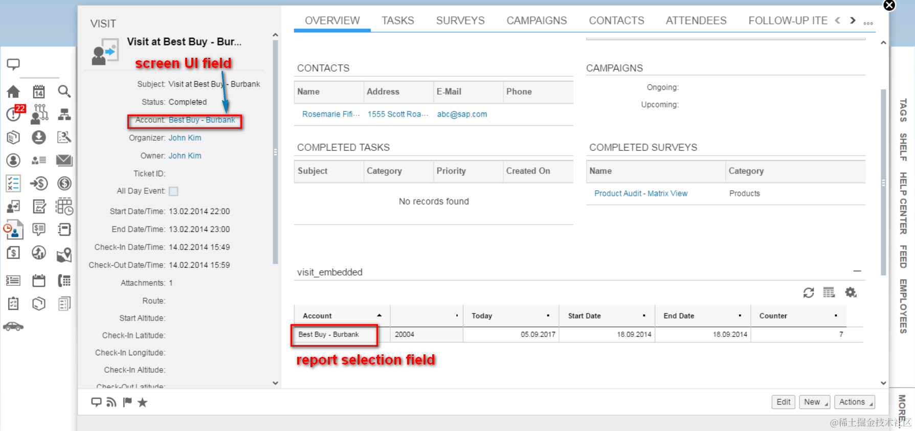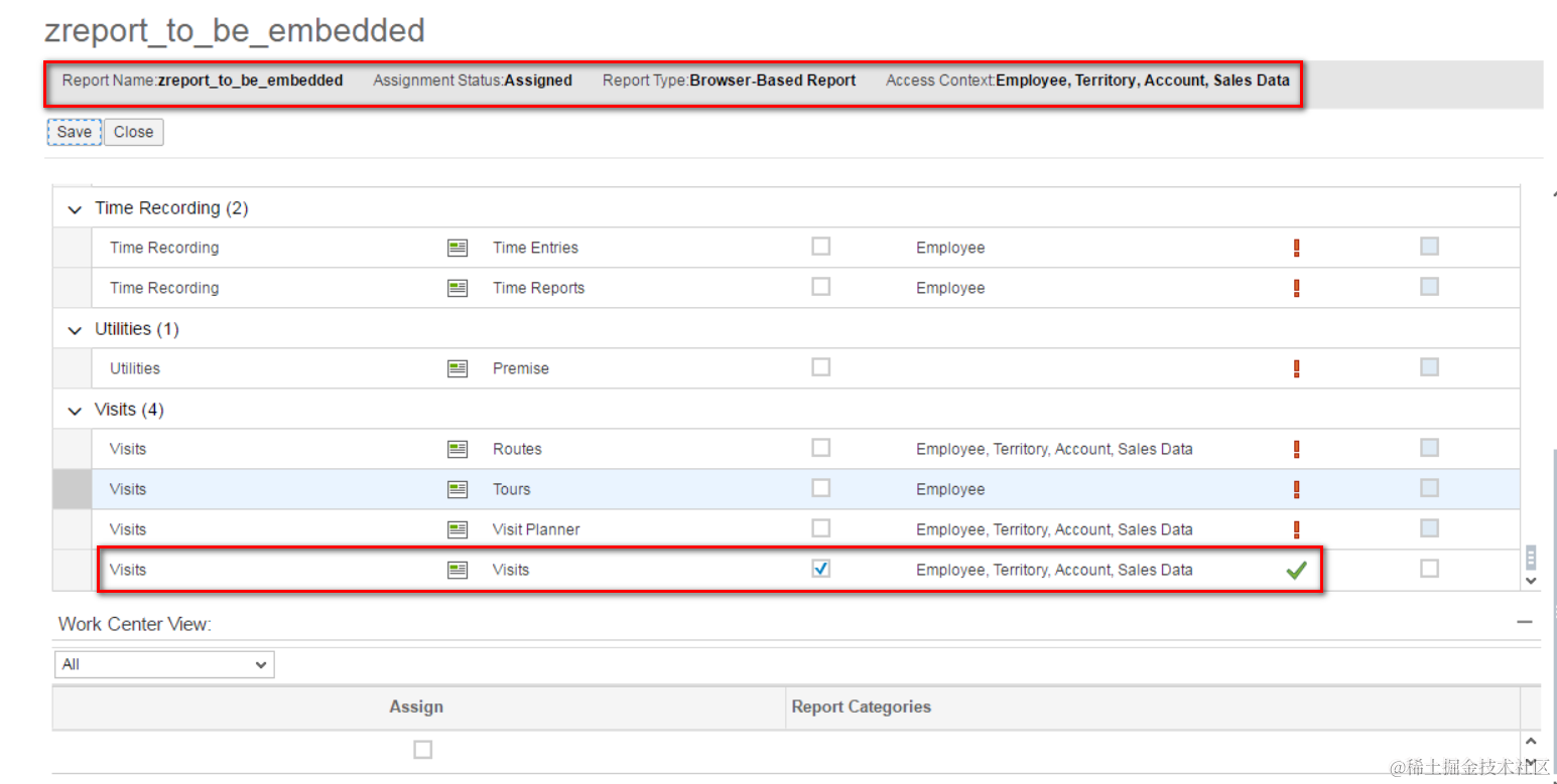 (2) Assign the created report to Work center Visit, view Visit by selecting the checkbox.