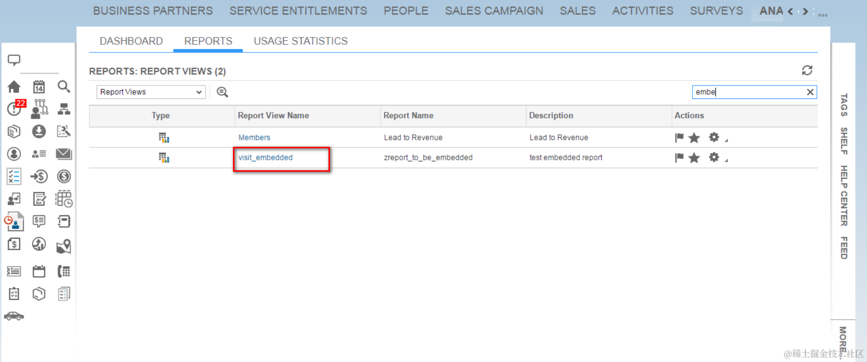 Specify “visit_embedded” as report view name: