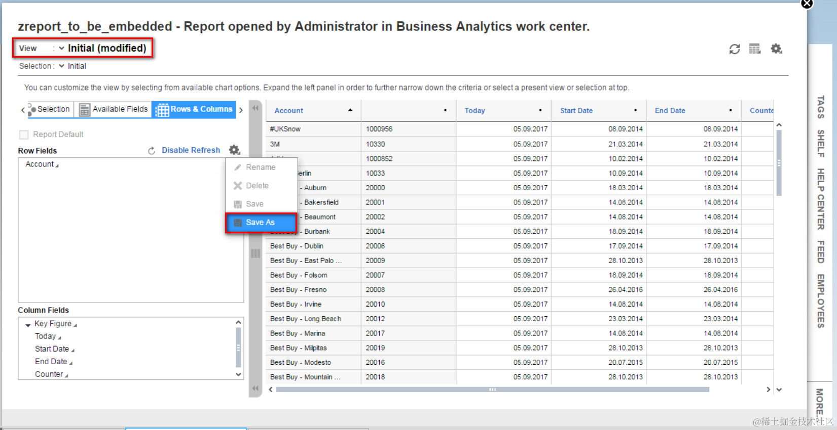 In the view creation UI, add “Account” as selection field. Now the Account ID and name could also be displayed in the report.