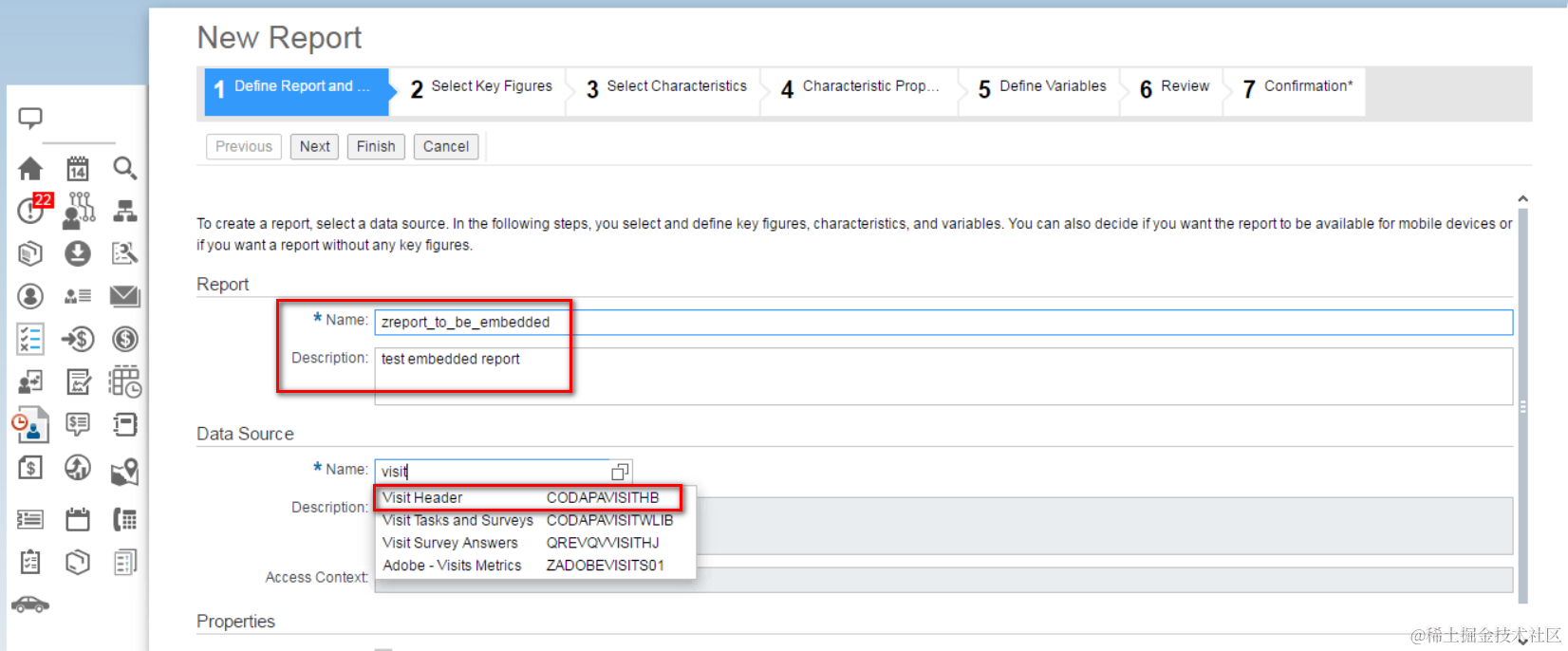 (1) Create a new report using data source “Visit Header”: