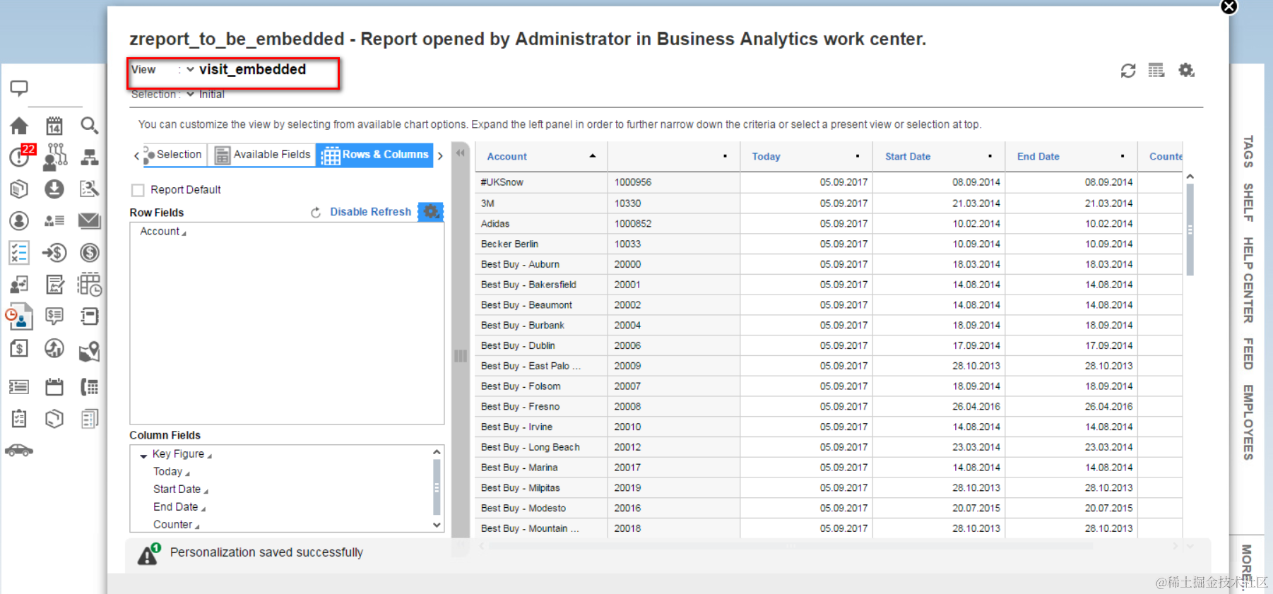 Once done, you could also see the report view in work center “Analytics”, view “Reports” using drop down list “Reports views”.