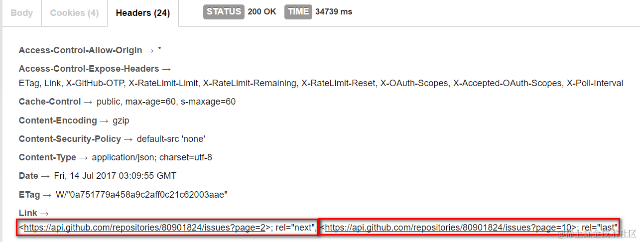 If there are still left issues to be exported, there will be two indicators stored in HTTP response fields of this single API call, one (rel=”next”) contains url which returns the next 30 issues and the other(rel=”last”) contains the url which returns the issues in the last page ). This paging logic should also be supported in the tool.