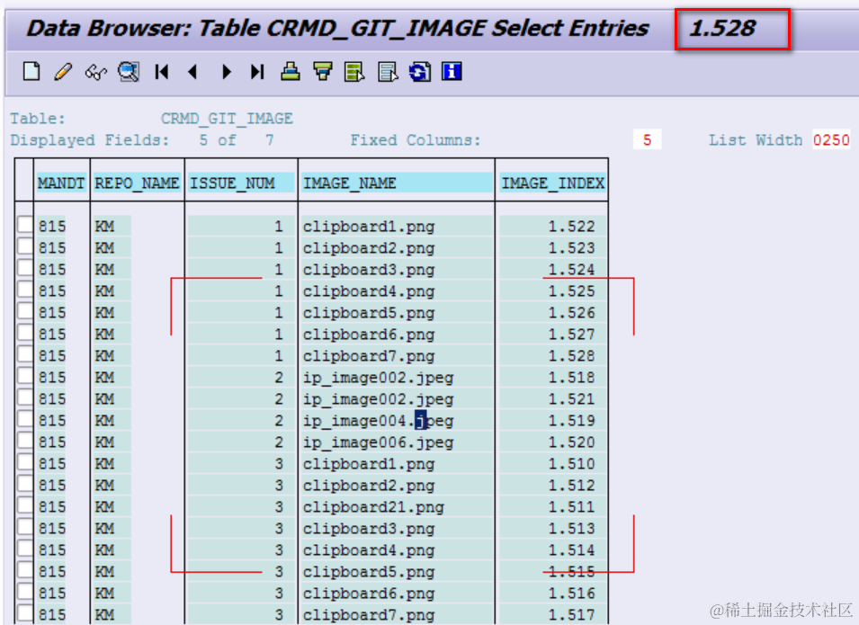 Solution could be found from CDS view CRMV_GIT_ISSUE_IMAGE_NUM.