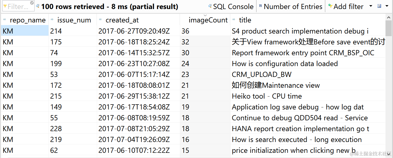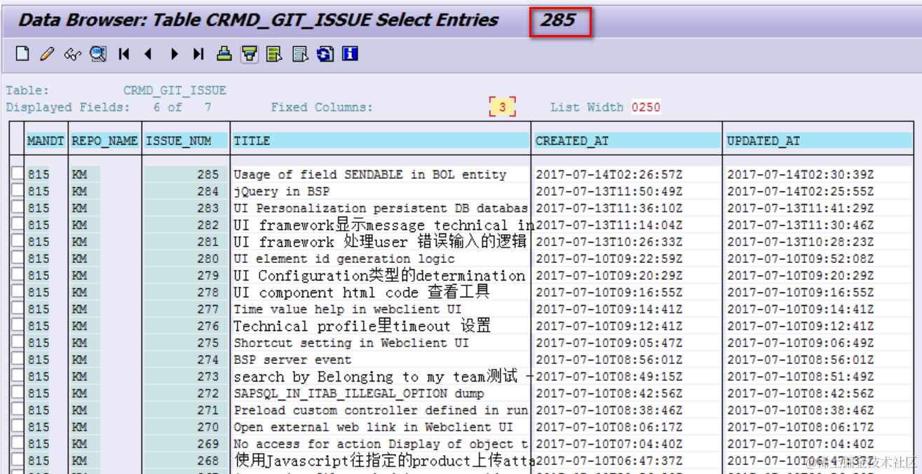 Once finished, you could find that all issues are stored into table CRMD_GIT_ISSUE.