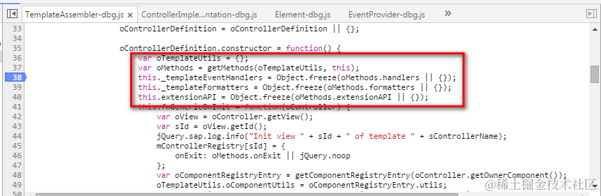 Then search “_templateEventHandlers” instead, this time TemplateAssembler-dbg.js is found.