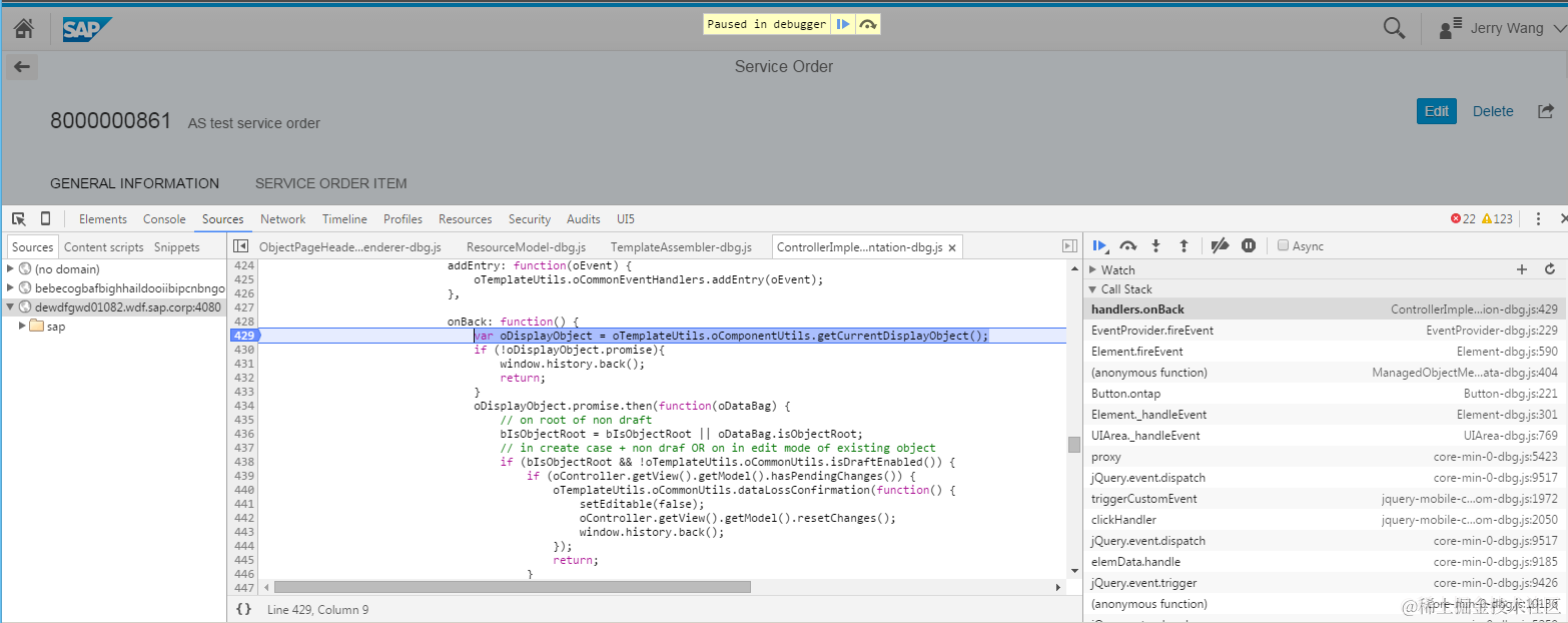 One of my colleagues today asked me this question: Suppose this below is an application generated by Smart Template, and I would like to debug how the back button is implemented. Since the whole UI page is implemented by framework, I don’t know where to set breakpoint. How to proceed?