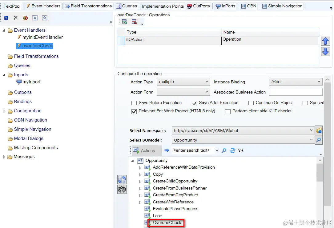 Create another event handler overDueCheck and bind the BO action OverdueCheck whose implementation is done by our ABSL code.