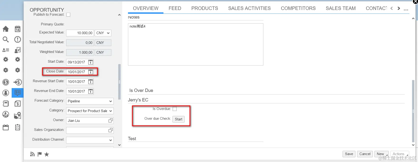 Now we could test in UI: select an opportunity whose close date is yesterday, and click check button: