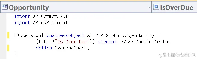(1) Create an extension field on Opportunity root node and implement an action to calculate whether the current opportunity is over due: