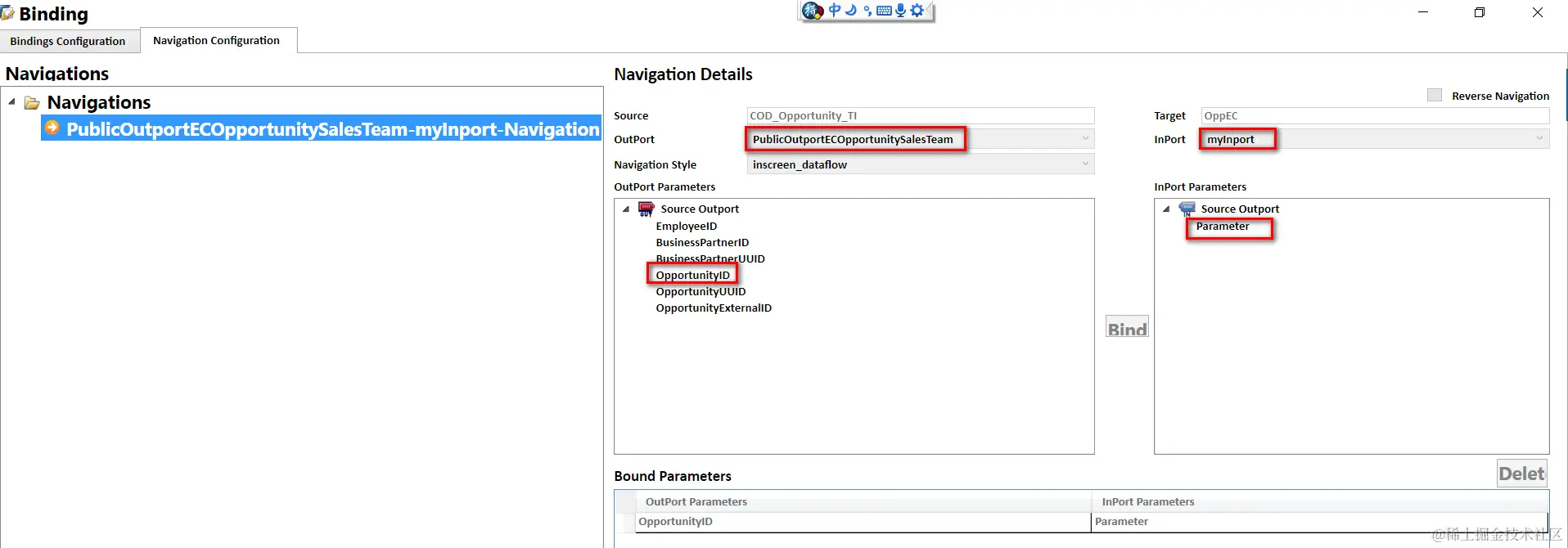 and bind the parameter defined in standard outport to the parameter declared in my custom inport in embedded component OppEC: