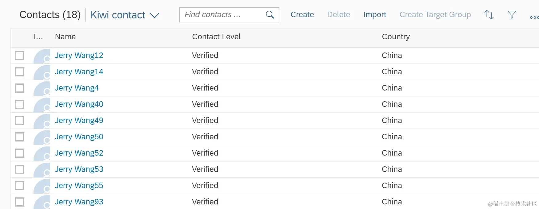 The created contact data in S/4HANA – I hard coded first name as “Jerry” and last name “Wang” and use jMeter random generator to ensure the created contact look not so boring