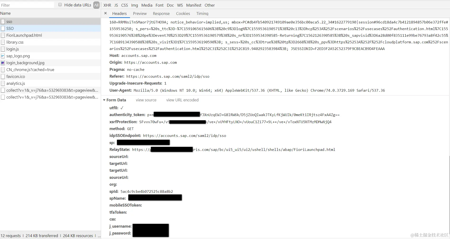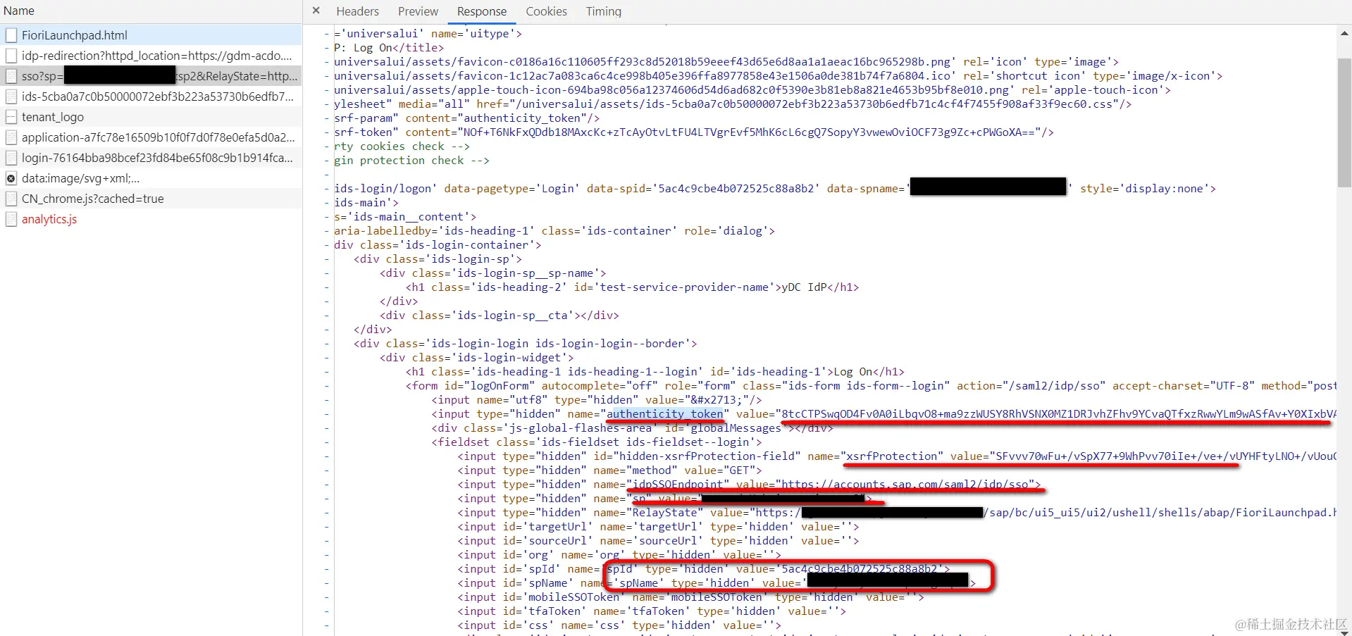 Step4: After users type their user and password and click log in button, the credentials will be sent back to IDP along with the hidden fields introduced in step3. All those fields will be involved in IDP authentication in server side, and could be observed in Chrome network tab.