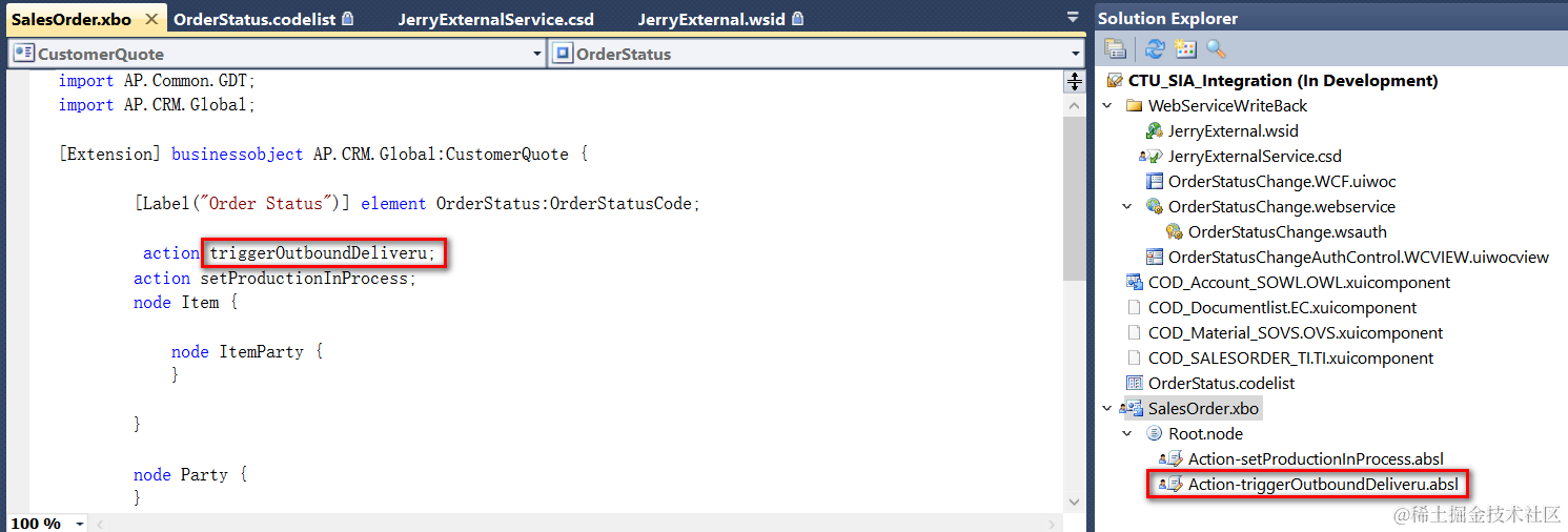 Now we can start to program in Sales order’s action triggerOutboundDelivery using ABSL.