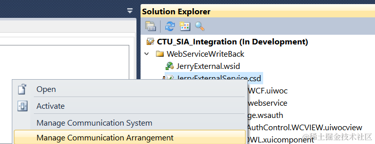 Right click Communication Scenario and choose “Manage Communication Arrangement” to finish the left Communication Arrangement maintenance task.