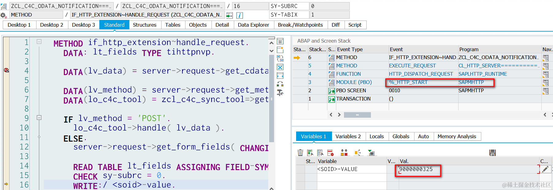 the S/4HANA SICF service implementation is called as expected, with Sales Order ID from C4C successfully passed.