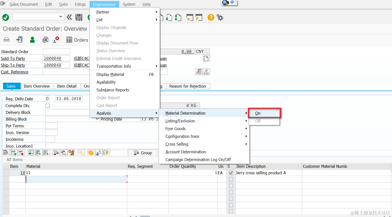 Alternatively you can also switch on material determination trace for observation purpose.
