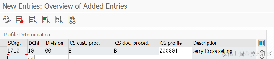 (6) Create a new Cross Selling profile Z00001, and assign the cross selling procedure created in step 4 to it.