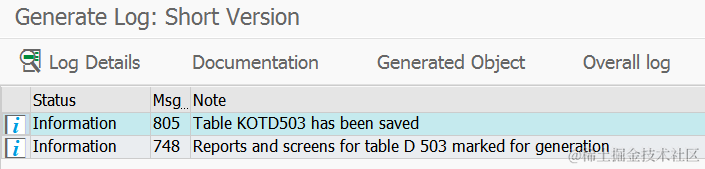Use 503 as condition table ID and generate it. Write down the name of this condition table: KOTD503 for later usage.