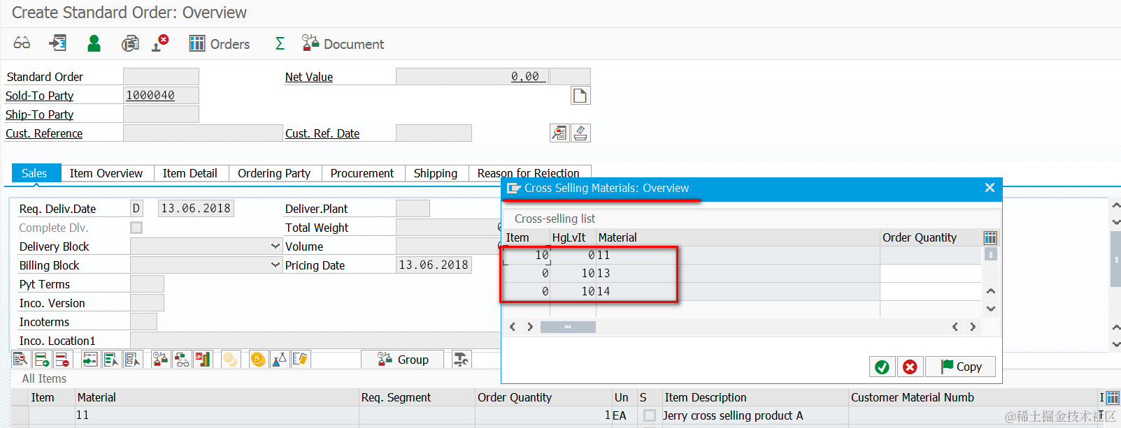 Now it’s ready for test. Create a Sales order with type OR, maintain 11 as line item and press enter key, another two materials 13 and 14 are determined and displayed in popup as expected.