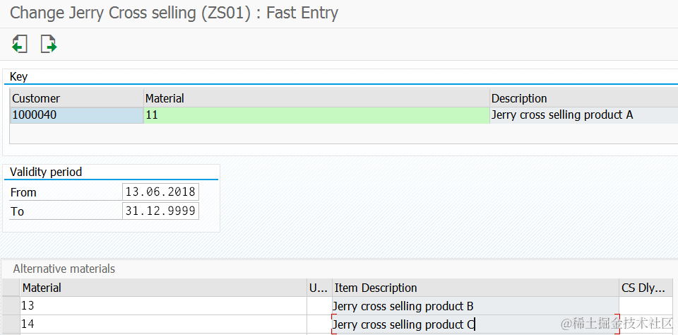 (7) Create Cross selling condition record via menu path: Sales and Distribution->Master Data->Products->Cross Selling