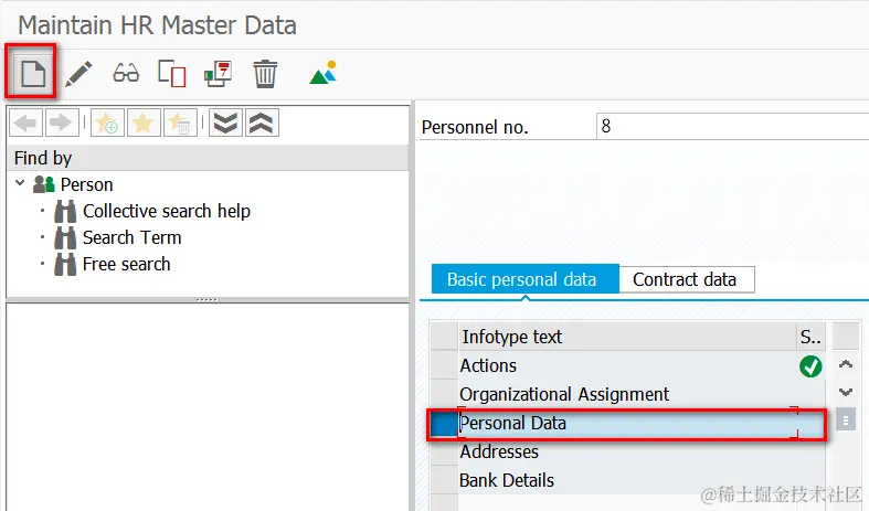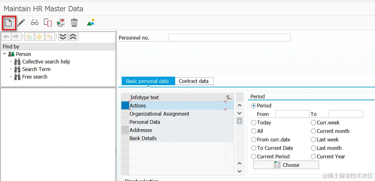 (1) tcode PA30, select Infotype as Actions and press the creation button: