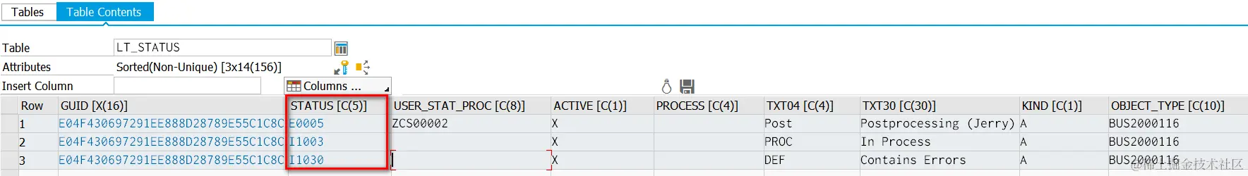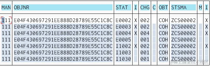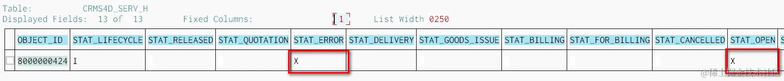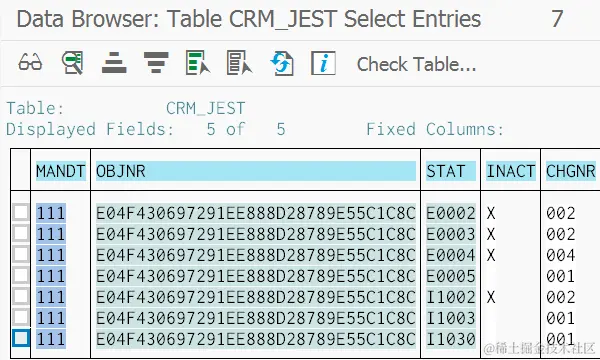 In the above mentioned example, two flags STAT_OPEN and STAT_ERROR are marked as X, which has corresponding storage in CRM_JEST as below: