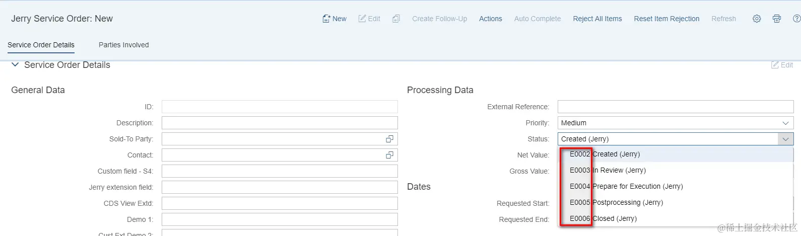 If user chooses user status E0002 from WebUI, the STAT_LIFECYCLE in CRMS4D_SERV_H will be set as F, E0003 as G, E0004 as H and so on.