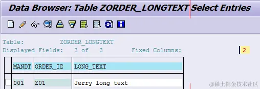 And the content of this property is stored in database table ZORDER_LONGTEXT, field LONG_TEXT, so you finally see the content “Jerry long text” in UI.