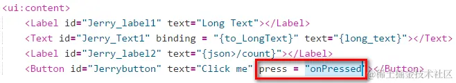 <Button id="Jerrybutton" text="Click me" press = "onPressed"></Button>