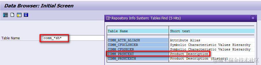 Then find potential database table which stores product text in CRM using “*” in SE16: